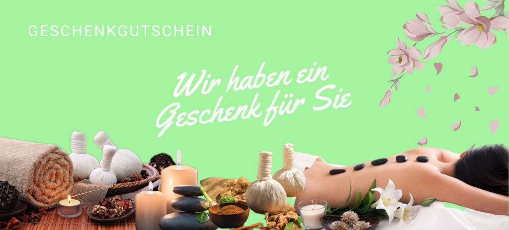 Ob zum Geburtstag, als kleine Auszeit zwischendurch oder einfach, um „Danke“ zu sagen! Mit einem Massage-Gutschein von Saisin Thai Massage schenken Sie nicht nur Wohlbefinden, sondern echte Erholung. Wählen Sie zwischen klassischen Thai-Massagen, Aromaölbehandlungen, Hot Stone,Thai Kräuter-Heißöl Massage oder wohltuender Fußmassage – ganz individuell einlösbar. Hochwertig gedruckt, stilvoll verpackt und persönlich bei uns im Studio erhältlich.